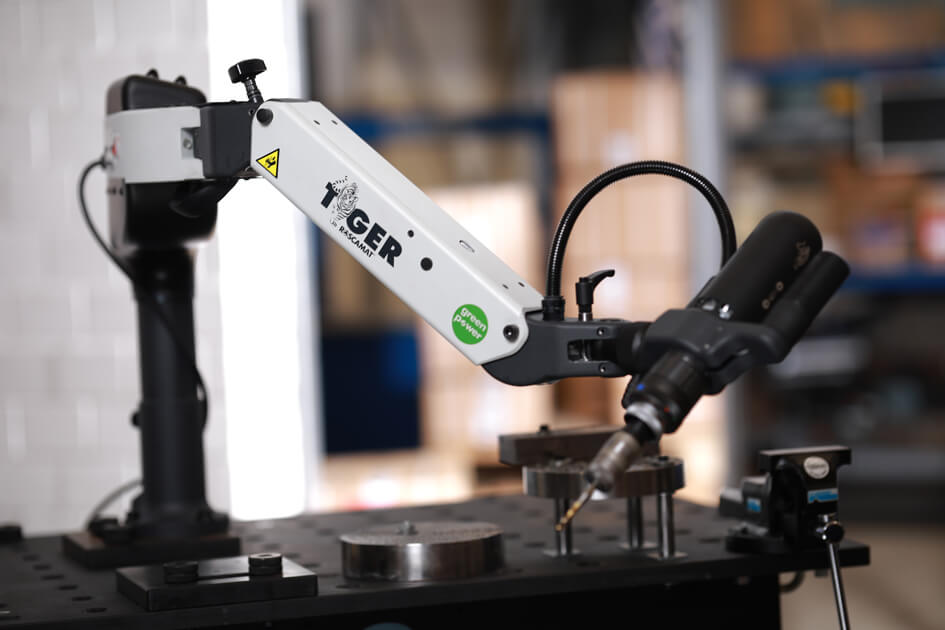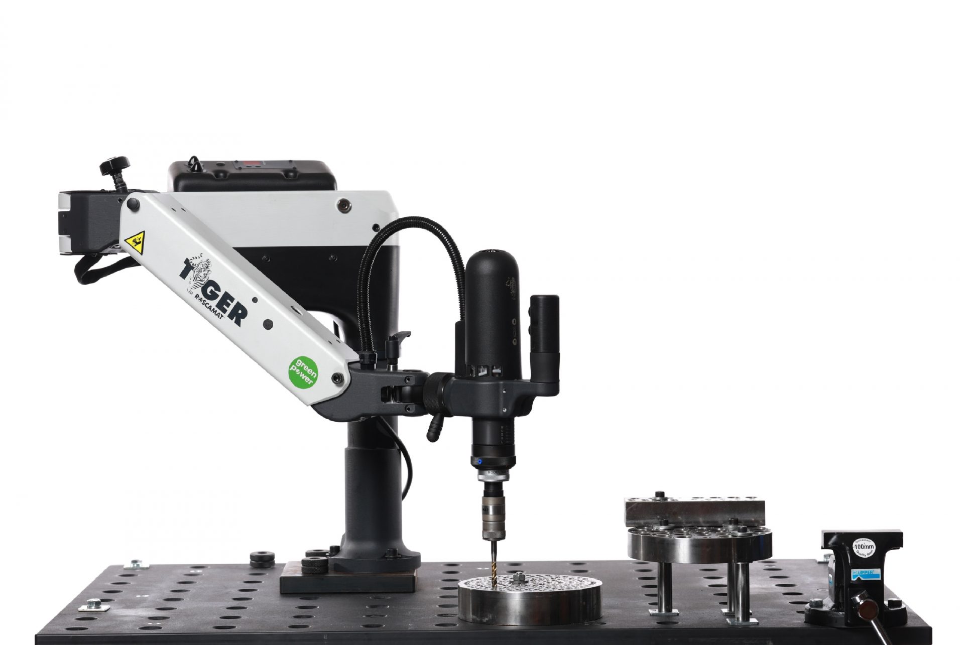 Mit der kompakten, elektrischen Gewindeschneidmaschine Roscamat Tiger lassen sich sehr leicht und sicher Gewinde in Aluminium, Stahl oder Kunststoff schneiden & formen. Auch sehr kleine Gewinde wie M2/M3 sind mit dem ausbalancierten, verwindungssteifen und exakt im 90° Winkel ausgerichteten Gewindeschneidarm kein Problem für Sie. Auch lassen sich mit dem Gerät Gewindeeinsätze wie ENSAT & HELICOIL einfach und leicht eindrehen.